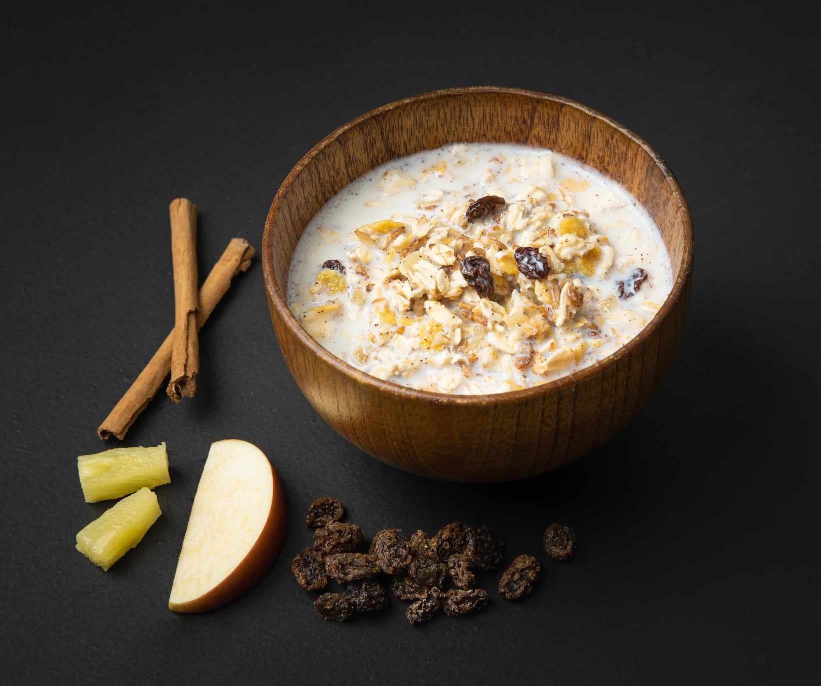 Muesli met ananas en rozijnen.