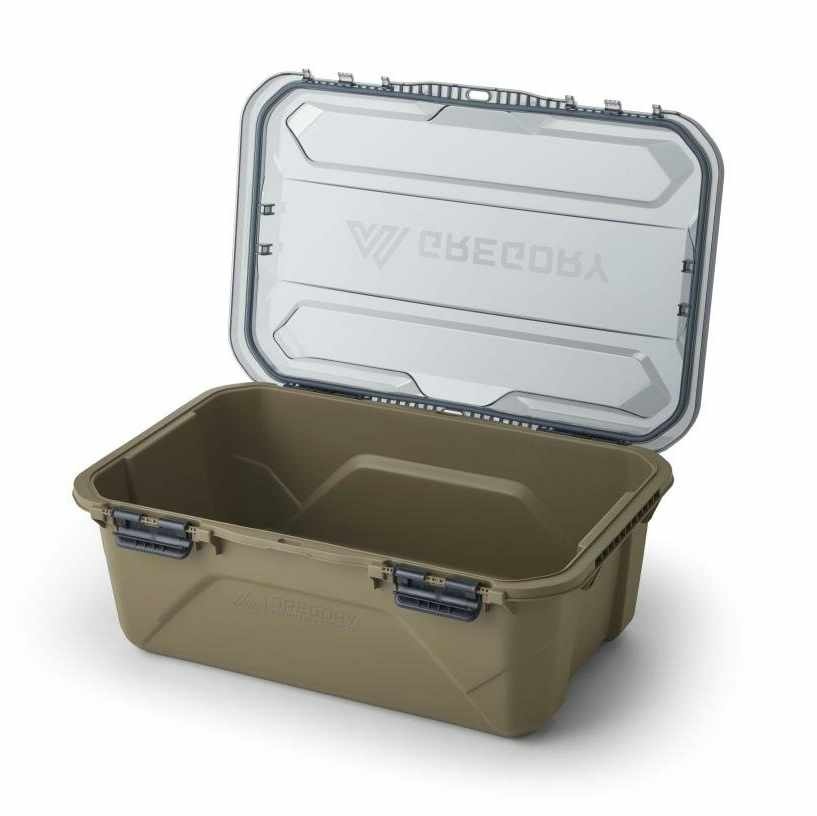 De Gregory Alpaca 45 opbergbox heeft een doorzichtige deksel met een scharnier/vergrendelontwerp die aan beiden kanten kan worden toegepast. De stevige deksel is zo ontworpen dat de box water- en stofdicht is. Met de handige handgrepen aan de zijkant is de opbergbox makkelijk te tillen en te verplaatsen. Ook kunnen meerdere boxen op elkaar gestapeld worden, want deze passen perfect op elkaar. Het onderste deel van de box is van 50% gerecycled materiaal gemaakt.