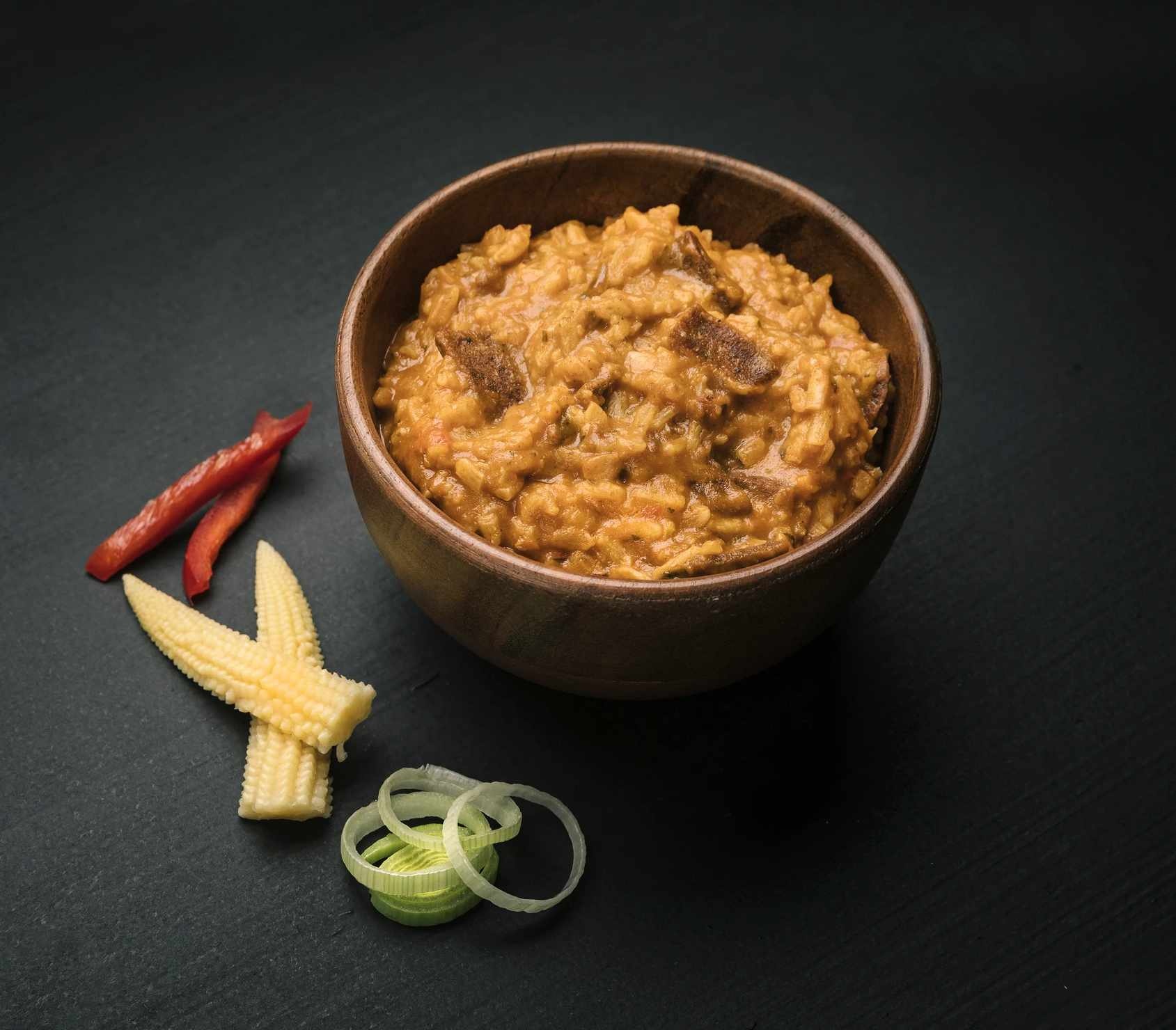 Deze maaltijd is afkomstig uit militaire rantsoenen, vaak aangeduid als FR of Drytech, en wordt door soldaten vertrouwd tijdens veeleisende missies. Elke portie biedt een gebalanceerde mix van koolhydraten, eiwitten en vetten. Dit helpt je om je energieniveau op peil te houden tijdens lange uren reizen of werken.