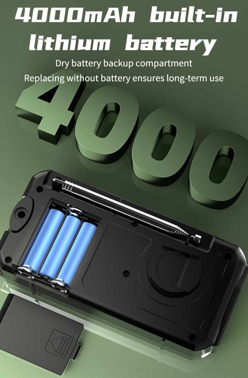 De batterijcapaciteit is met 4.000mAh dubbel of zelfs vier keer groter dan andere noodradio's op de markt.