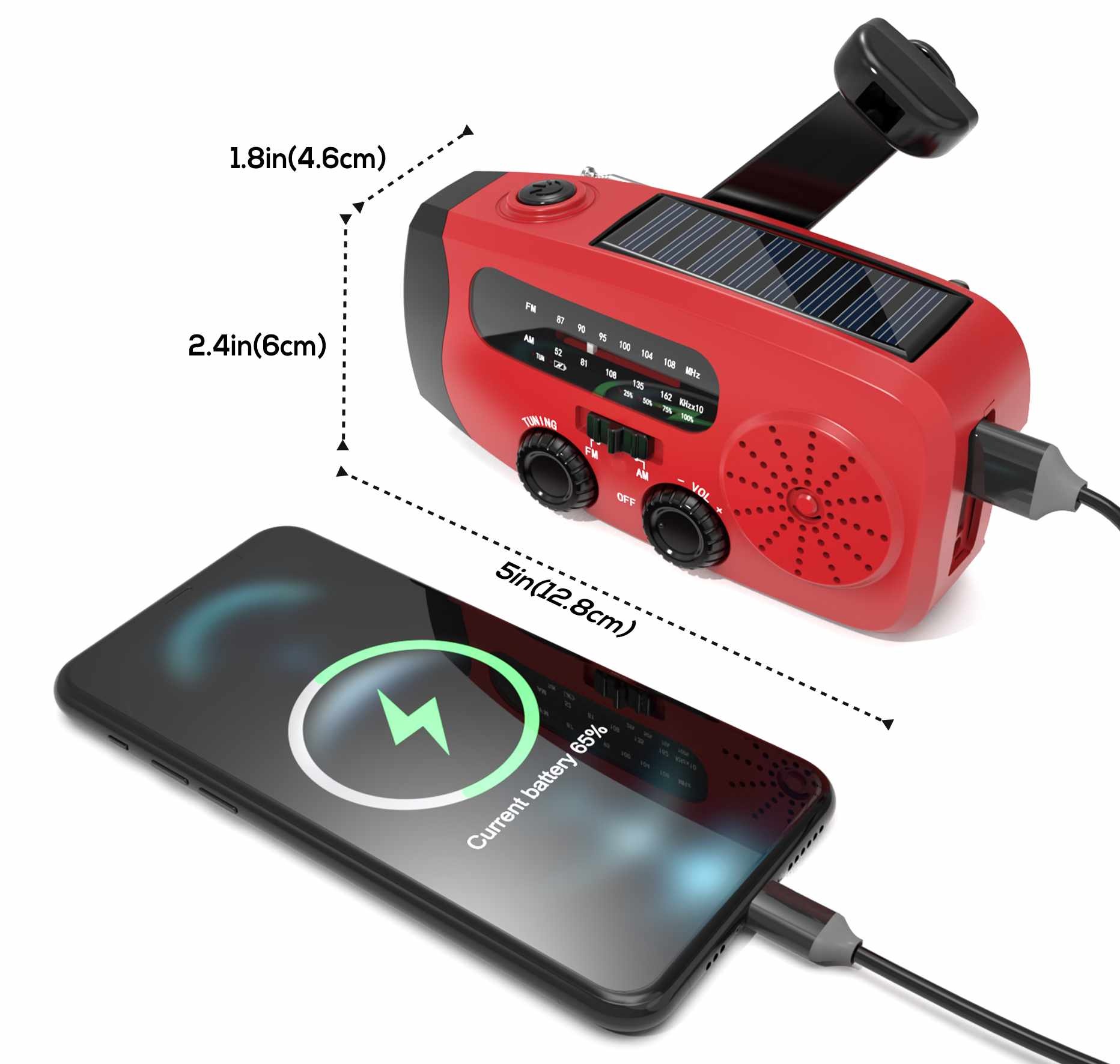 Je hoeft bij deze noodradio niet aan de zwengel te draaien om je telefoon bij te laden. Je steekt eenvoudig het laadsnoer van je telefoon in de USB-poort van de Noodradio en het laadproces begint automatisch. Je kunt ook andere apparatuur (max. 1A) opladen aan deze USB-poort zoals je smartphone of navigatie-apparatuur. Let wel, het is zeker geen powerbank voor dagelijks gebruik, maar bedoeld voor noodgebruik.