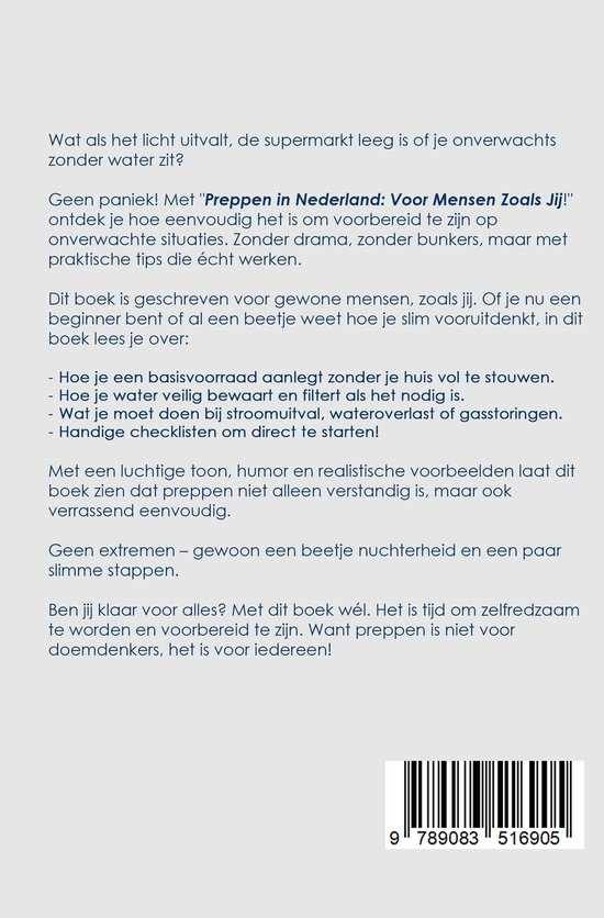 Geen doemdenken, maar gewoon een beetje extra rust en controle in je leven. Met humor, relativering en haalbare stappen laat dit boek zien dat preppen echt voor iedereen is. Of je nu alleen woont, een gezin hebt of een nieuwsgierige beginner bent.