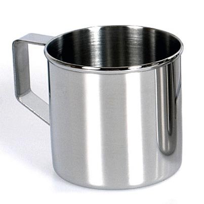 Oerdegelijke klassieke roestvrijstalen mok met een inhoud van 2,5 dl en met een oor.